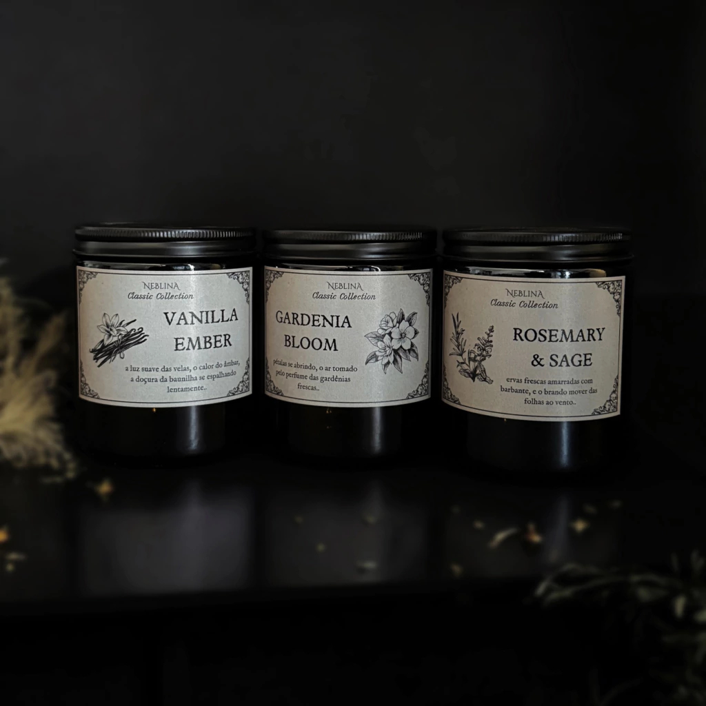 Três velas, três atmosferas inesquecíveis. Nossa Classic Collection é um convite para momentos de aconchego e nostalgia, trazendo fragrâncias atemporais que transcendem o tempo: